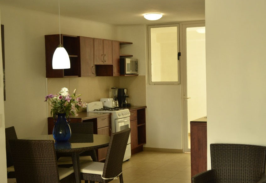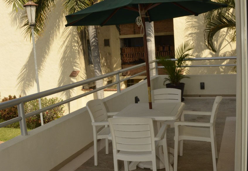 Two bedroom suite on second floor with private terrace (poolside view). Fully furnished, WiFi, cable TV and cookware.